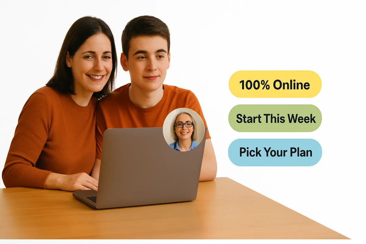 Hop on the short call to make sure it’s the right fit. If you love it (most families do), choose your plan and begin sessions the same week — 100% online, on your schedule.
